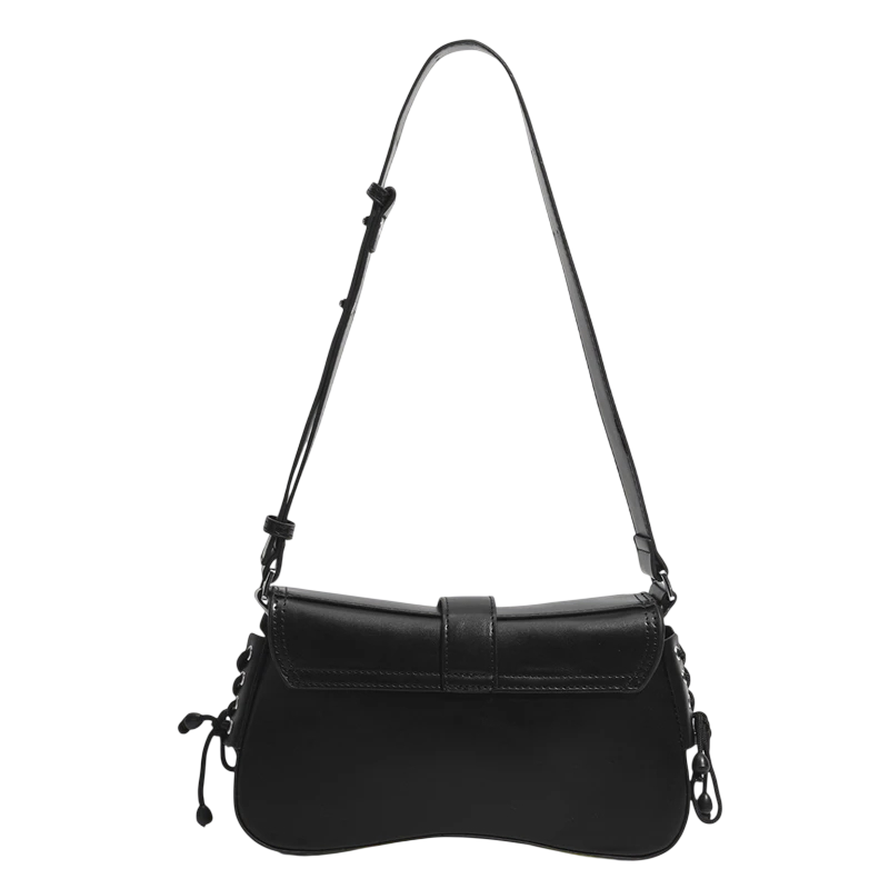 Sac à main élégant au design gothique avec un aspect sombre, des dimensions compactes et une organisation pratique pour un usage quotidien. Description complète