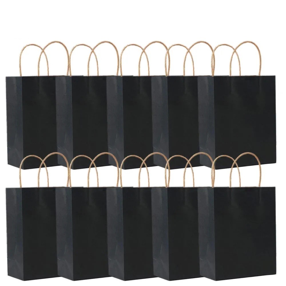 Sacs en papier cadeaux 10 pcs 15 × 8 × 21 cm sacs noirs avec poignées en papier emballage de cadeaux fête et emballage de cadeaux d'anniversaire