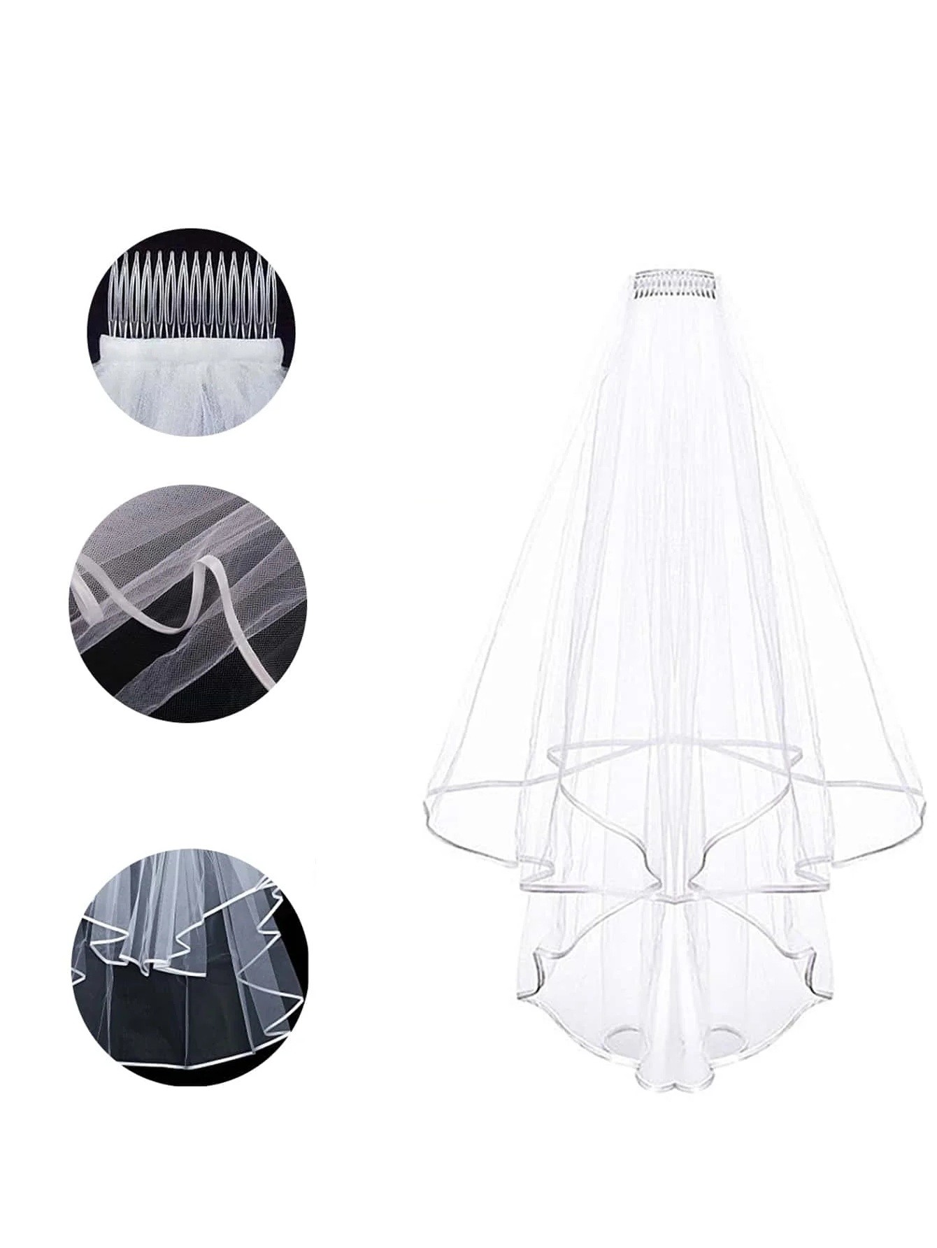 • Le voile est équipé d'un peigne en plastique pour une fixation facile