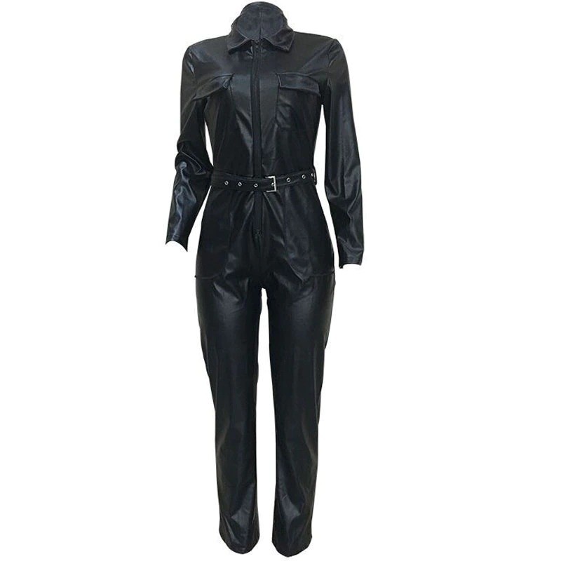 Salopette en cuir pour femmes avec décolleté plongeant