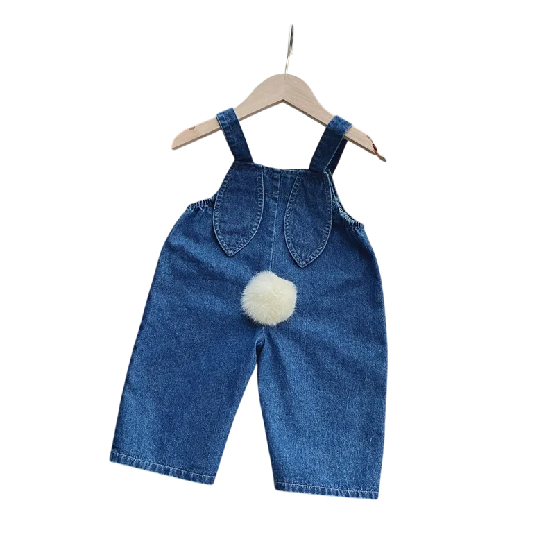 Salopette en jean sans manches pour bébés et filles avec des oreilles de lapin et une queue