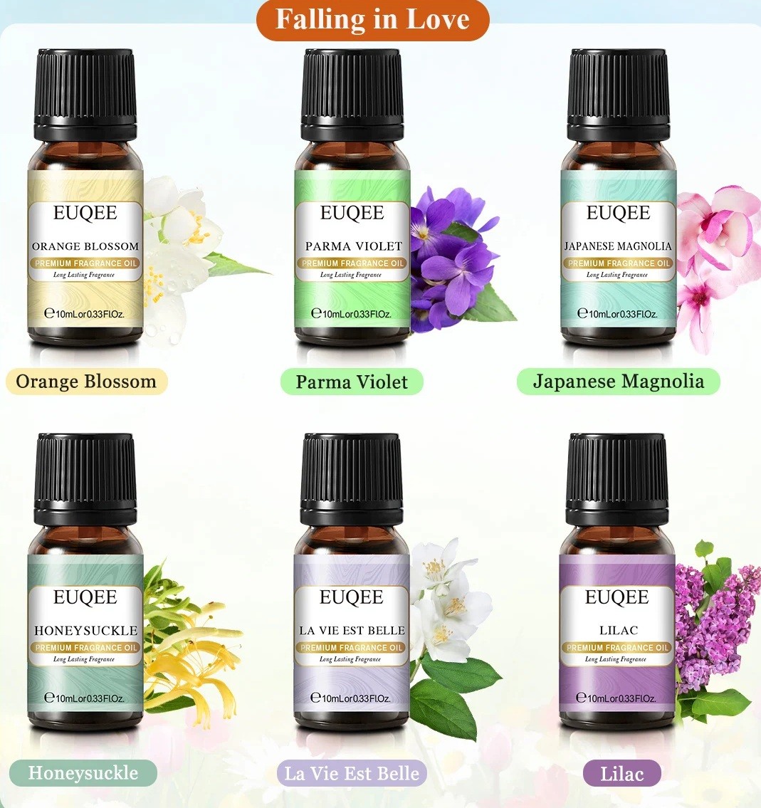 La série d'huiles parfumées nommée Falling in Love est destinée à être utilisée dans des diffuseurs et des humidificateurs d'air. Elle contient six parfums différents qui apportent une variété d'arômes adaptés à un usage quotidien. Chaque flacon a un volume de 10 ml, ce qui permet un dosage facile selon les besoins. Grâce à son emballage compact de dimensions 165 × 72 mm, le coffret est pratique aussi comme cadeau.