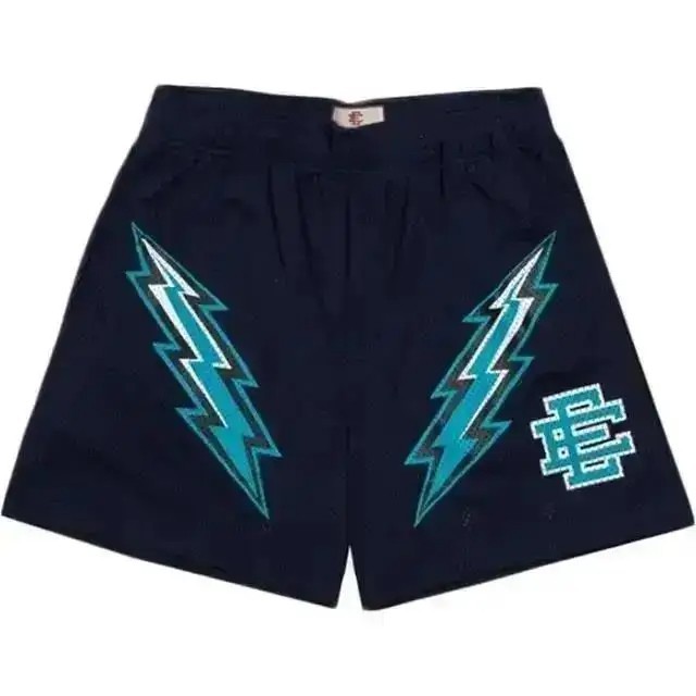 Short en mesh respirant avec un imprimé éclair audacieux. Idéal pour l’entraînement, les loisirs et les chaudes journées d'été. Coupe ample et taille élastique. Description complète