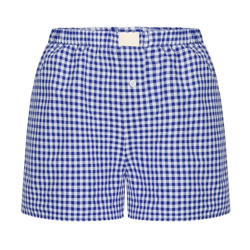 Shorts décontractés et confortables avec taille élastique et motif à carreaux moderne, idéaux pour l'été, à porter à la maison ou pendant les loisirs. Description complète