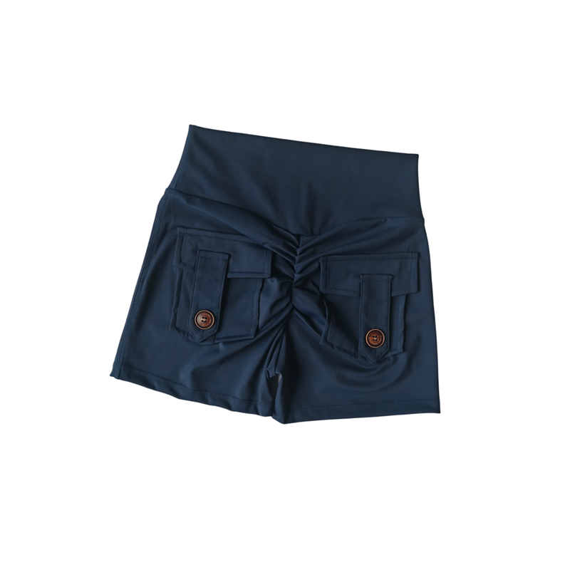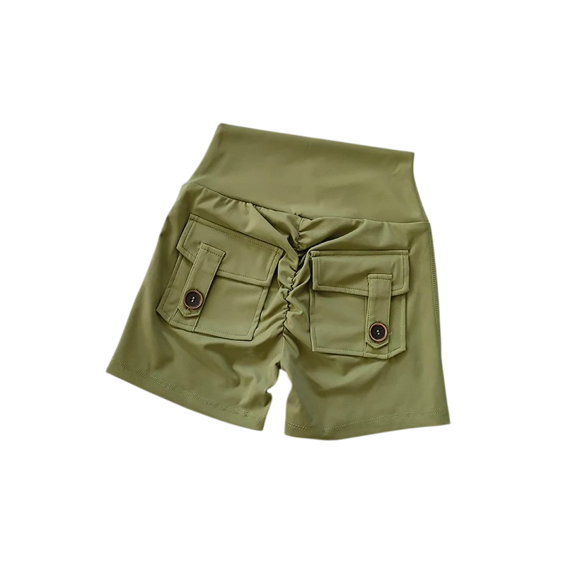 Shorts unis confortables avec taille haute et poches en matériau élastique, idéaux pour l'été, le sport et le quotidien. Description complète