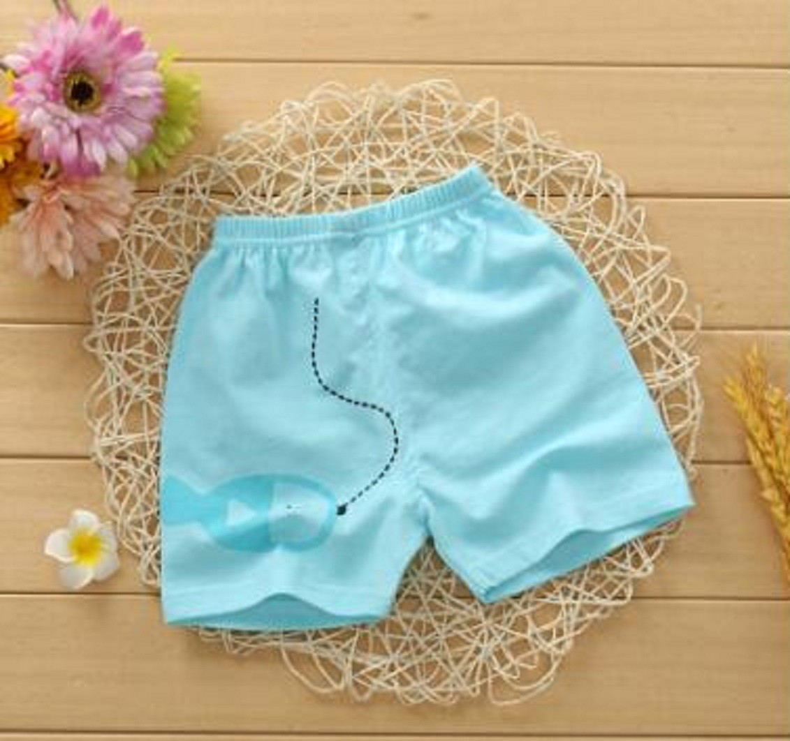 Beaux shorts pour enfants avec un petit poisson sur la jambe inférieure gauche.