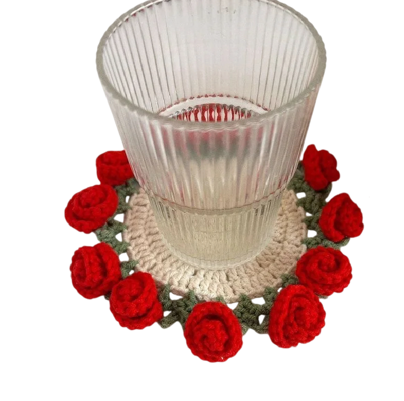 Le sous-verre en crochet fait main avec motif de roses est un accessoire pratique et décoratif qui sert de support pour tasse, verre ou petit plat. Il aide à protéger la surface de la table contre les taches, les gouttes et la chaleur. Grâce à son travail manuel, chaque pièce a un aspect unique et crée une ambiance chaleureuse. Le délicat motif floral de roses confère au sous-verre un caractère élégant. Il est adapté à un usage quotidien ainsi qu'à des occasions plus festives.