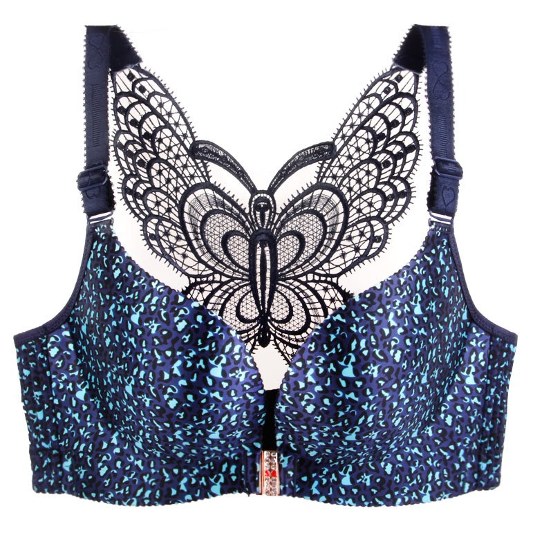 Le soutien-gorge a un motif léopard et un dos en dentelle en forme de papillon.