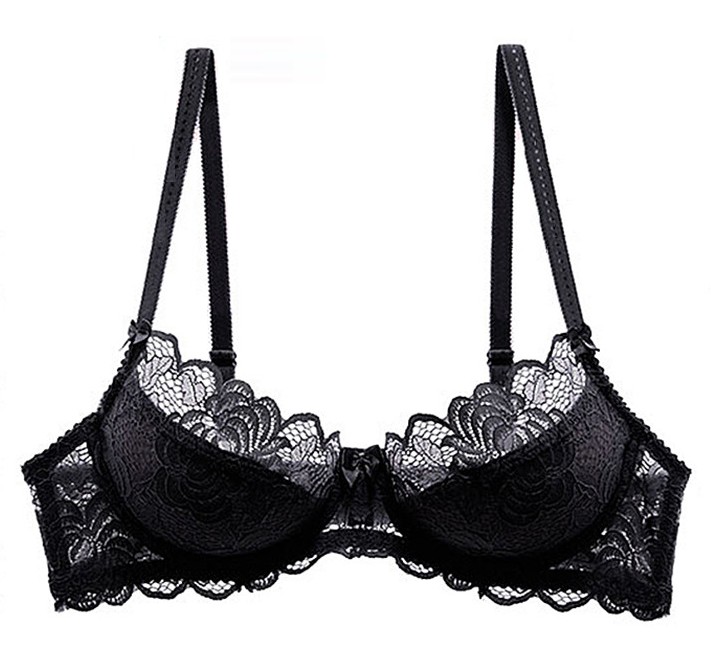 Le soutien-gorge a des bonnets en dentelle semi-armés.