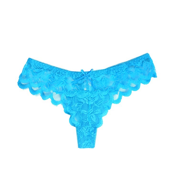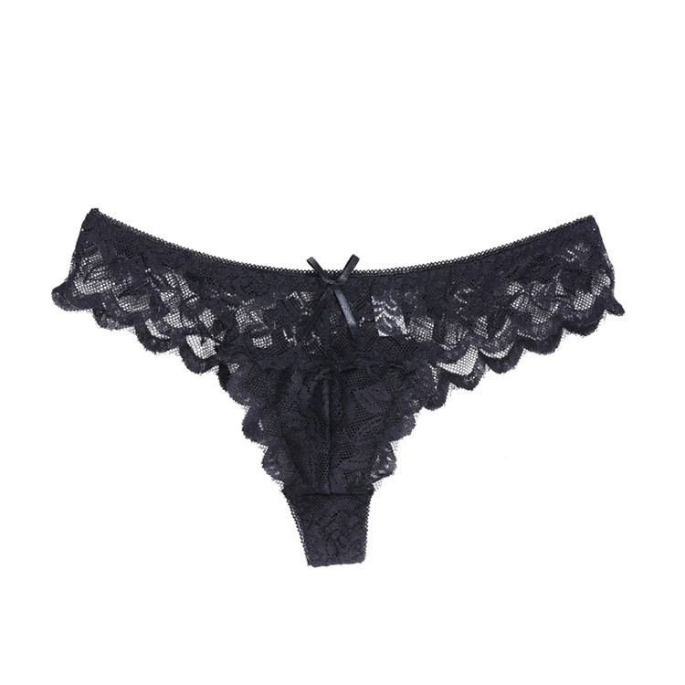 Le string est orné de dentelle qui forme une sorte de jupe.