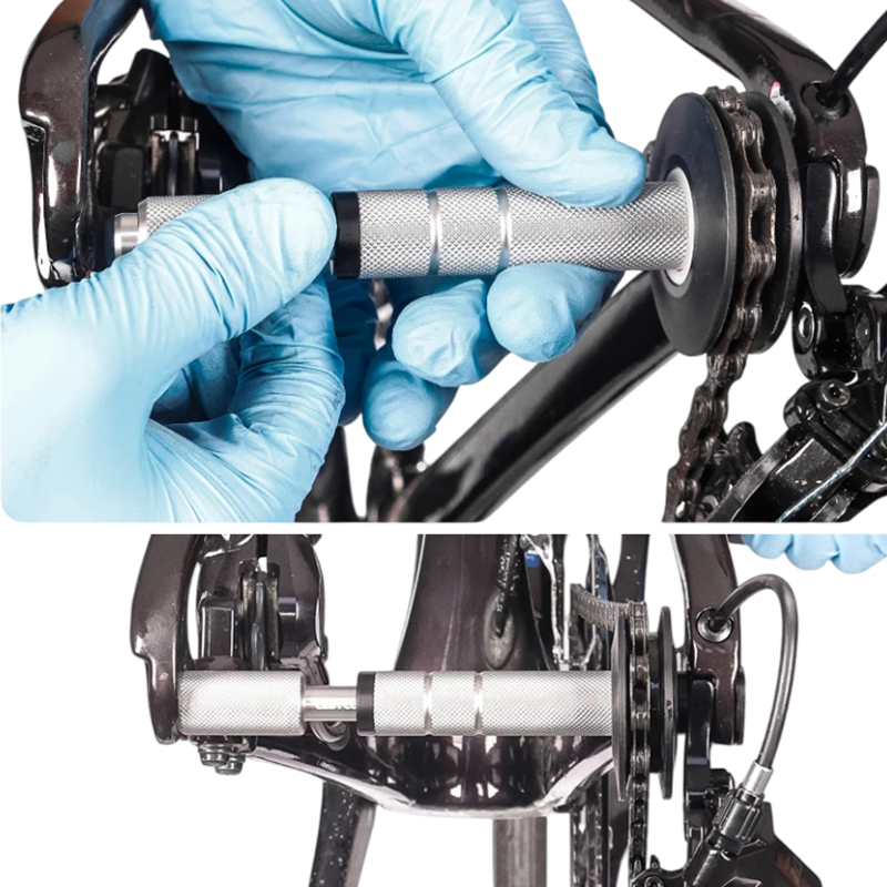 • Maintient la chaîne tendue lors du démontage de la roue arrière - idéal pour le lavage et la lubrification