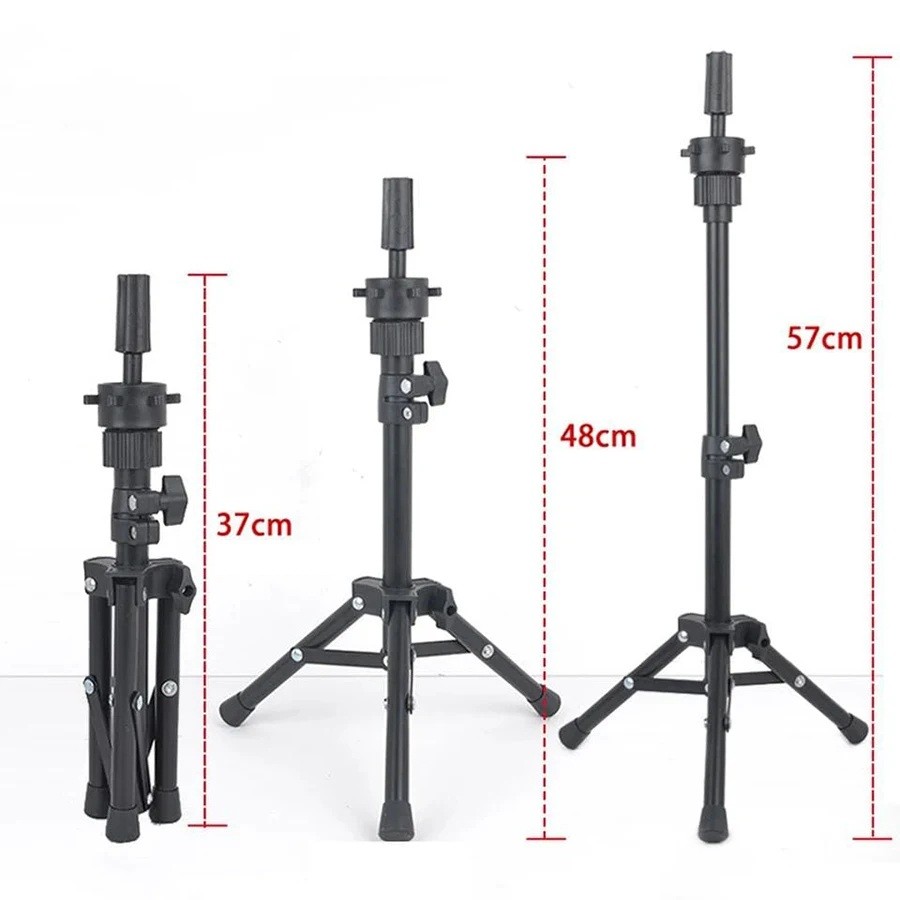 Support de trépied pratique pour têtes de perruques avec extension jusqu'à 57 cm. Idéal pour les têtes d'entraînement et les usages en coiffure. Support réglable pour une utilisation facile. Description complète