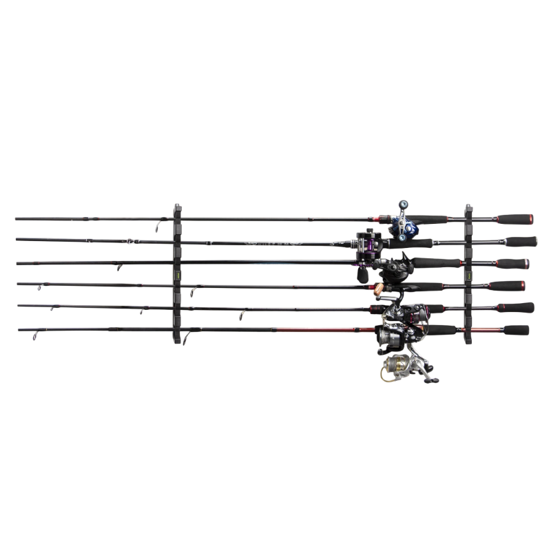 Page d’accueil Page d’accueil Sport et outdoor Pêche Petits accessoires de pêche Autres petits accessoires de pêche Support mural horizontal pour 6 cannes à pêche, support d'environ 37,1 × 5,8 cm, en plastique noir, organisateur de cannes pour l'atelier ou le garage