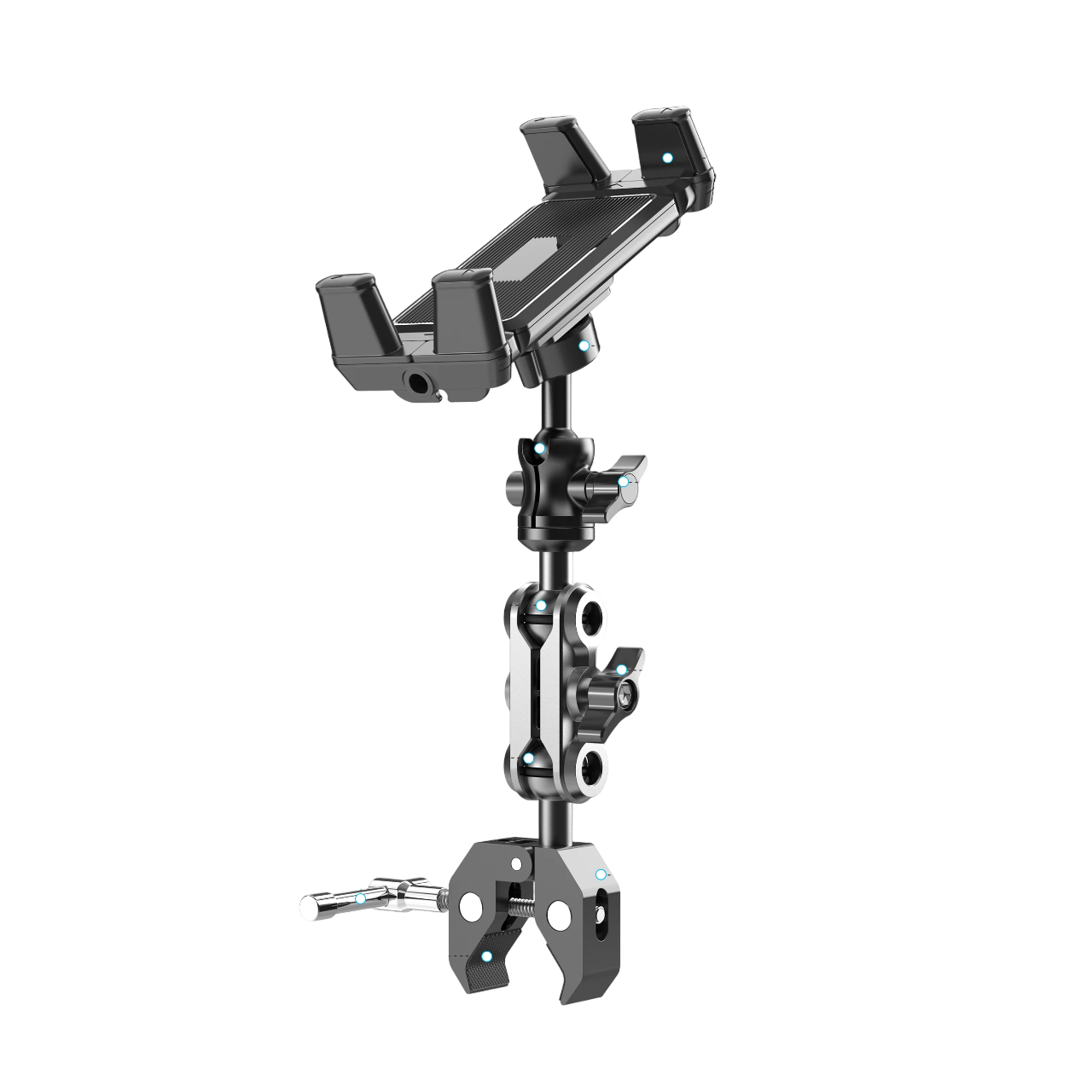 Support pivotant universel pour tablette et téléphone adapté aux tapis de course, poussettes, vélos d'appartement ou vélos. Pivotant à 360°, idéal pour une utilisation active. Description complète