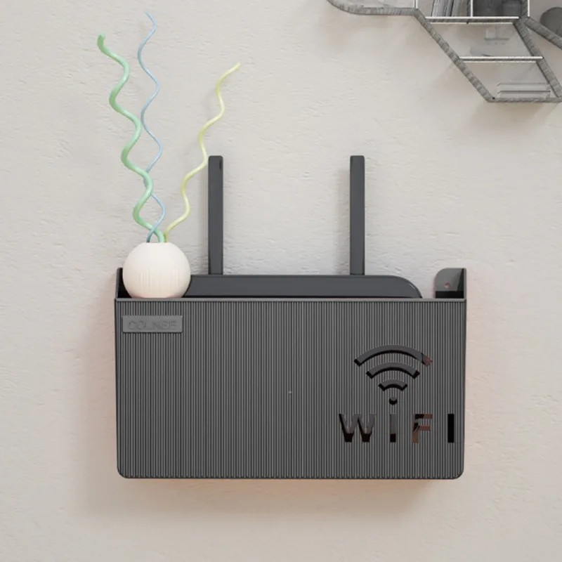 Support mural pour routeur WiFi 24,5 x 14 x 6 cm Boîte de rangement pour modem Organisateur de câbles et d'alimentation