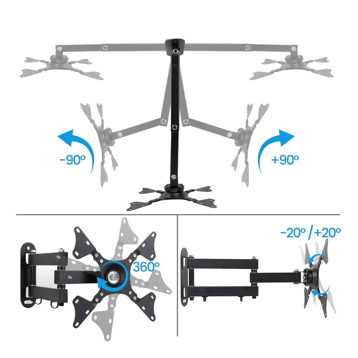 Support mural universel pour téléviseurs et moniteurs 14-32 pouces, mobile, rotatif et ajustable pour un placement flexible et un angle de vision optimal. Description complète