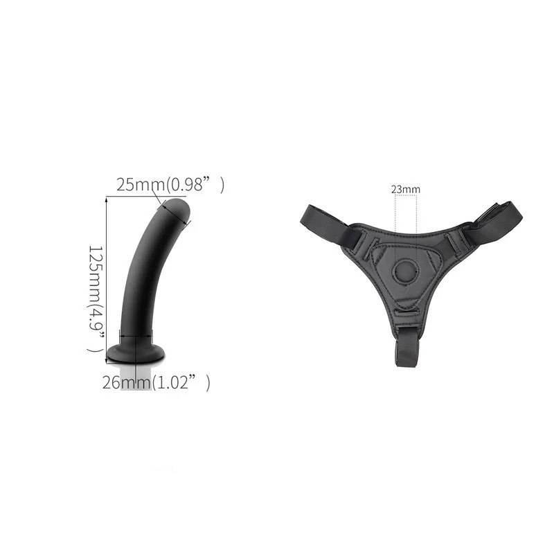 Le système comprend un harnais strap-on de haute qualité en cuir synthétique premium et un dildo en silicone de 12,5 cm de long. Le harnais est conçu pour un confort maximal et une fixation solide, tandis que le dildo offre une expérience réaliste grâce à son silicone doux et flexible, qui est également suffisamment ferme pour un usage confortable.