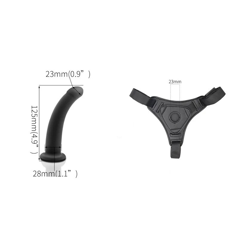 Le système comprend un harnais strap-on de qualité en simili cuir premium et un dildo en silicone en forme de pénis de 12,5 cm de long. Le harnais est conçu pour un confort maximal et une fixation solide, tandis que le dildo offre une expérience réaliste grâce à son silicone doux et flexible, tout en étant suffisamment ferme pour un usage confortable.