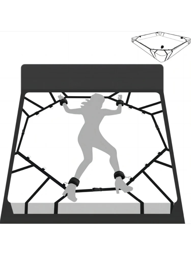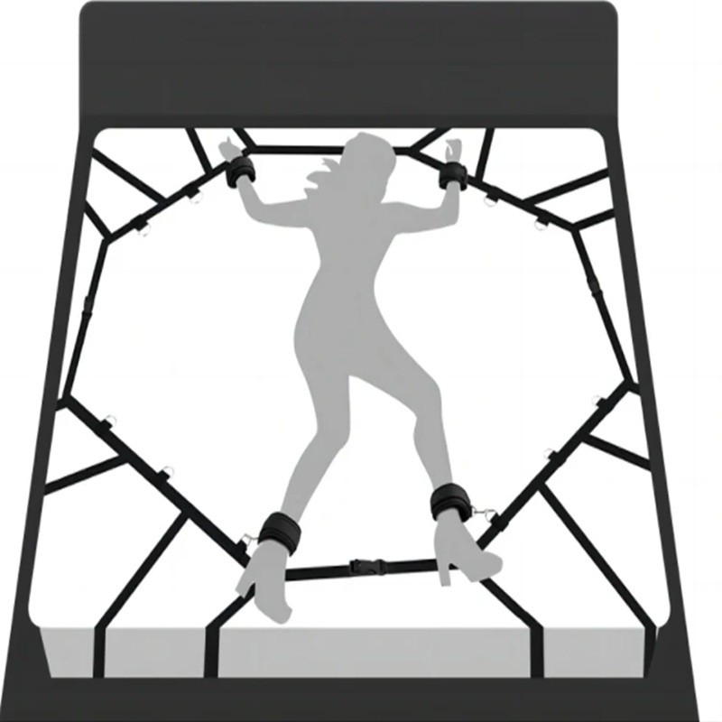 Ce système de sangles complet transforme un lit ordinaire en un poste BDSM polyvalent. L'ensemble du système se fixe sous le matelas, créant une base avec 12 points d'attache stratégiquement placés – la disposition permet de fixer les mains et les pieds à différentes hauteurs, angles et positions. L'emballage contient deux paires de menottes réglables, qui peuvent être attachées selon les besoins à n'importe quel point du système.