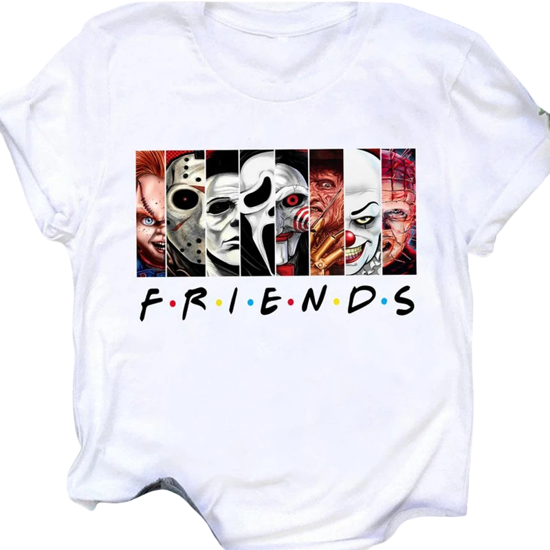 T-shirt femme avec imprimé horreur Friends Personnages emblématiques Personnages de films Motif horreur Design drôle Manches courtes Style streetwear