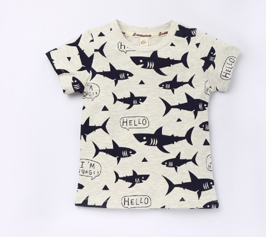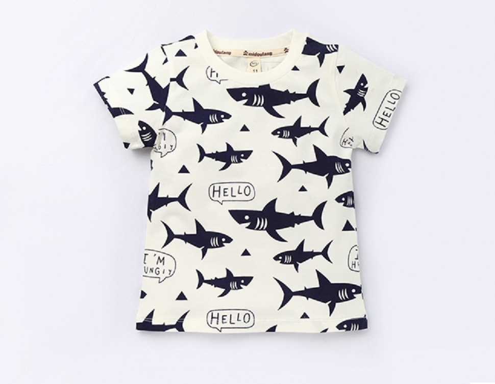 Beau t-shirt avec un imprimé de requins sur tout le t-shirt.