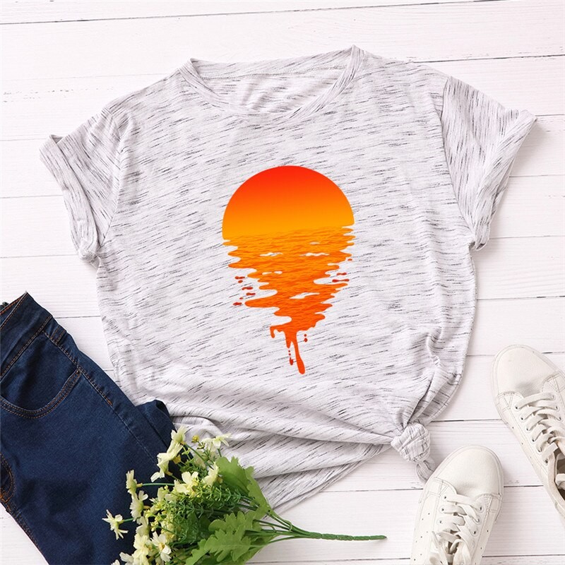 T-shirt pour femmes avec impression de coucher de soleil