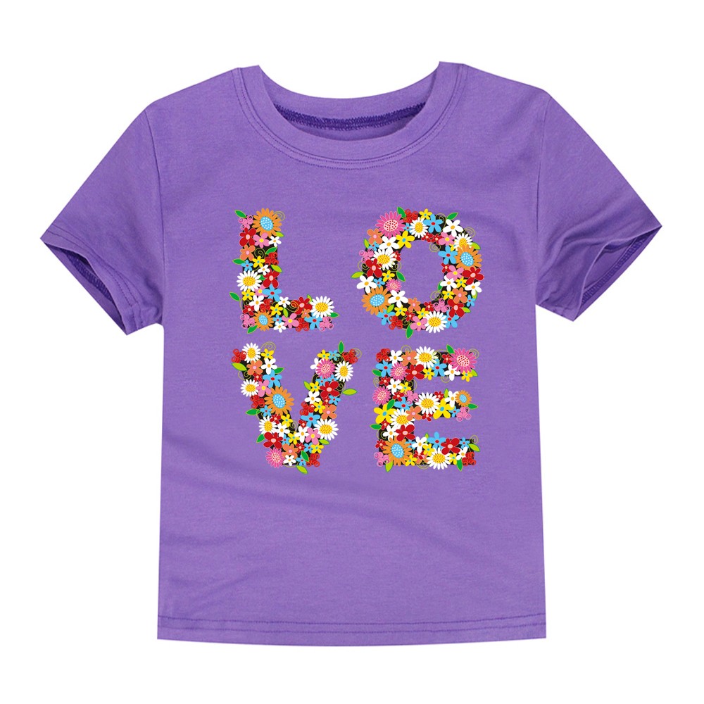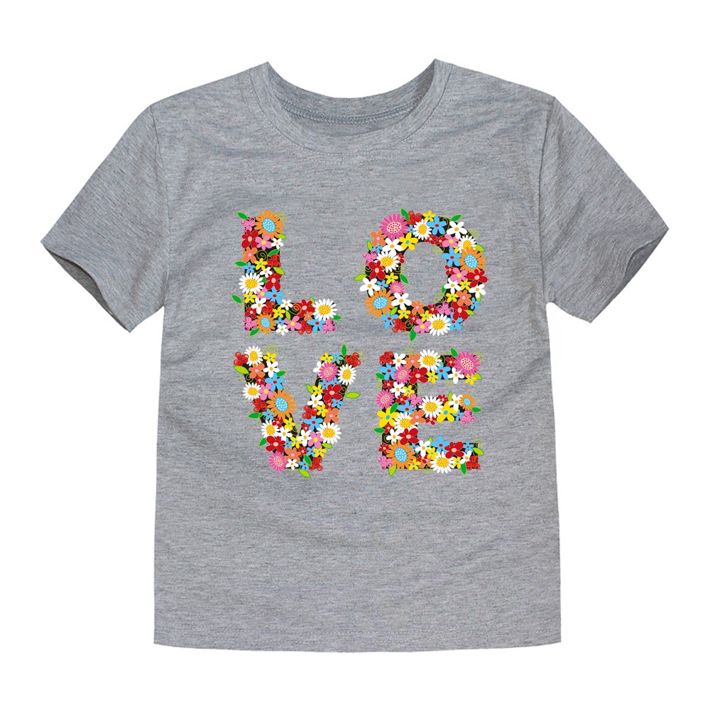 Beau t-shirt pour fille avec l'inscription LOVE et des fleurs.