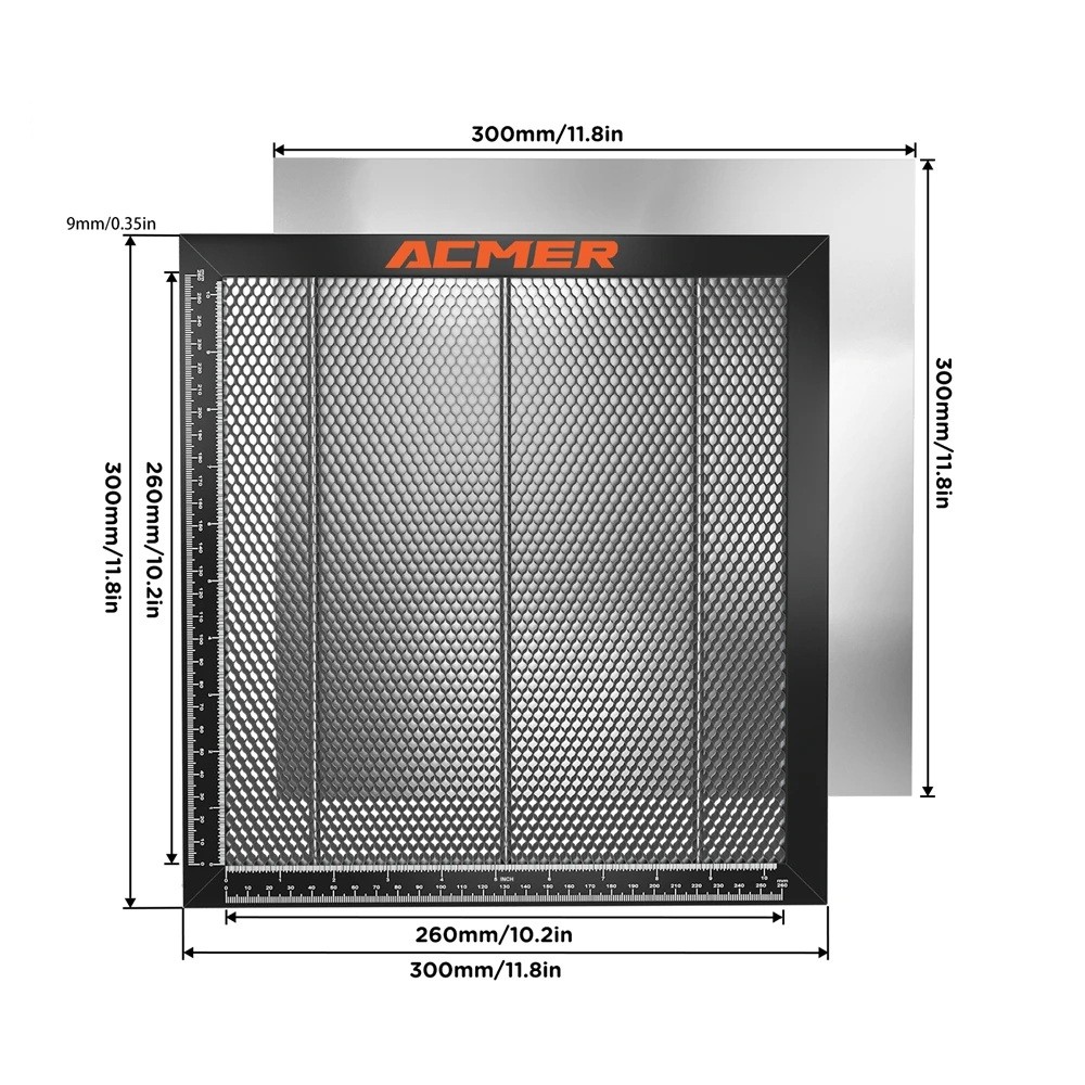 Table de découpe laser ACMER 300x300 mm Panneau en nid d'abeille avec plateau en métal pour machine de gravure et de découpe laser CO2 et diode