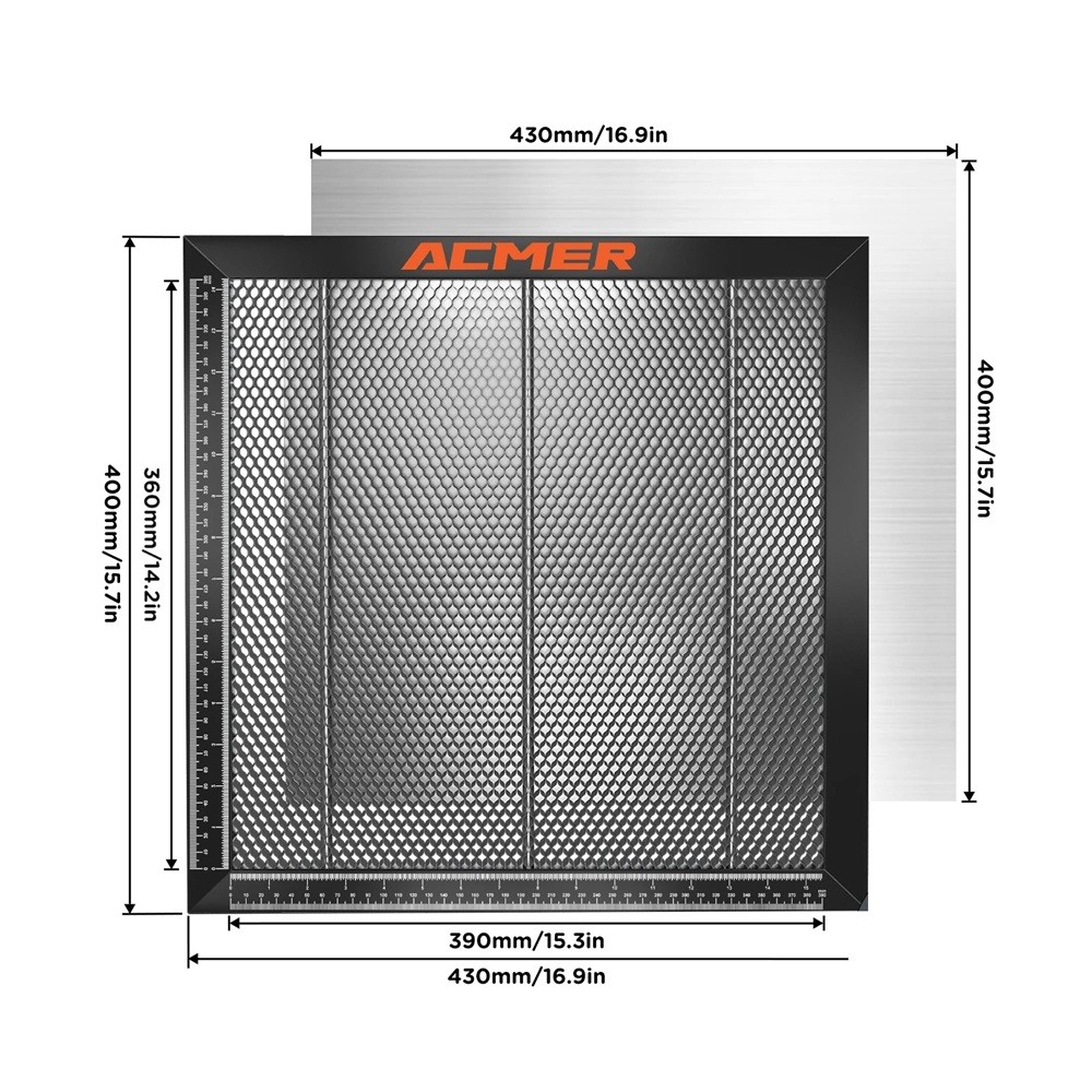 Table de découpe laser ACMER 430x400 mm Panneau alvéolaire avec plateau en métal pour machine de gravure et de découpe laser CO2 et diode