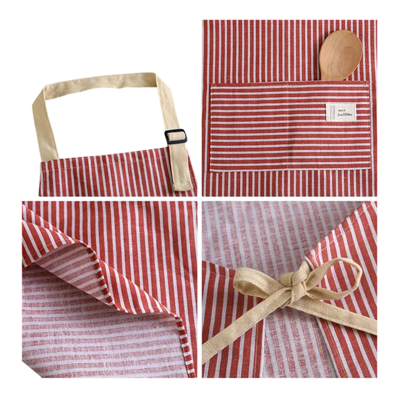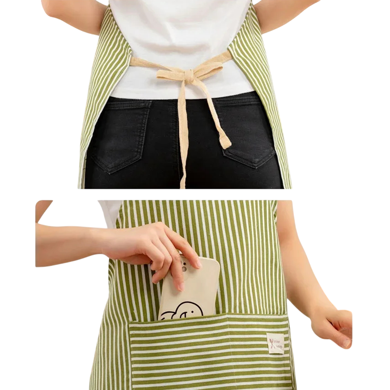 Tablier en lin léger protégeant les vêtements lors de la cuisine ou du jardinage, confortable, durable et stylé avec des rayures élégantes. Description complète