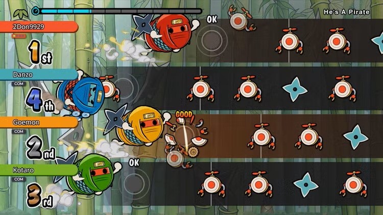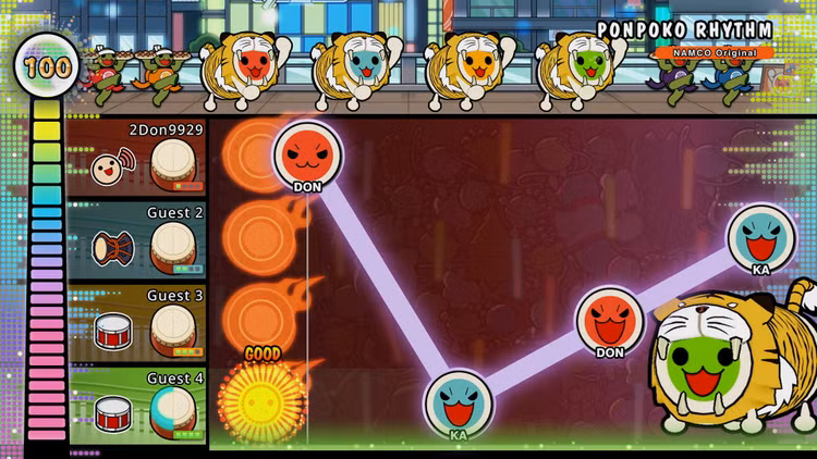 • Le jeu propose 76 morceaux à travers différents genres, tels que l'Anime, le VOCALOID™, la musique de jeu et le Pop ! Parmi les chansons figurent Gurenge, My Neighbor Totoro – Ending Theme Song, Charles, MEGALOVANIA, Into The Night, Feel Special et bien d'autres ! Amusez-vous à jouer de manière décontractée avec un autre joueur ou à concourir pour le meilleur score ! Vous pouvez également utiliser le soutien à l'amélioration, qui vous aidera à améliorer vos compétences de tambourinage !