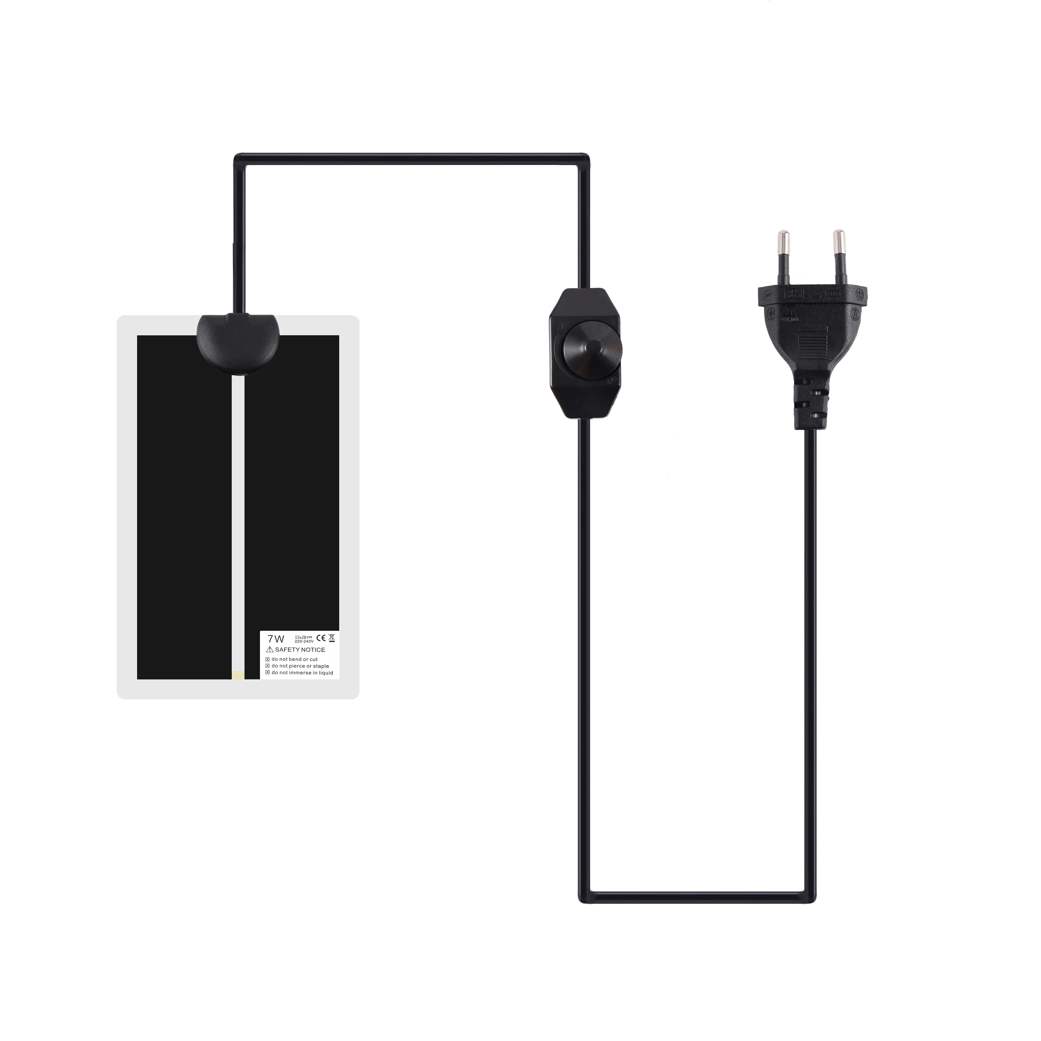 Ce tapis chauffant de haute qualité est idéal pour chauffer de petits terrariums et pour assurer des conditions optimales pour les reptiles, tels que les géckos, lézards, serpents et autres. Avec une puissance de 7W, il est parfait pour les petits terrariums. La température réglable permet d'ajuster facilement la température de 5°C à 53°C, garantissant des conditions optimales pour vos animaux. Le tapis est fabriqué en film chauffant électrique en graphène, assurant une répartition uniforme de la chaleur.