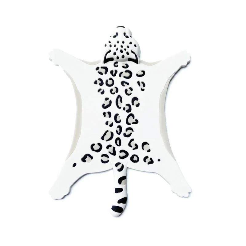 Le tapis est conçu en forme d'animal dessiné. Le motif léopard crée un élément décoratif saisissant qui peut égayer une table dressée ou un espace de travail dans la cuisine. Le motif caractéristique du pelage donne au tapis un aspect intéressant tout en conservant une utilisation pratique simple.