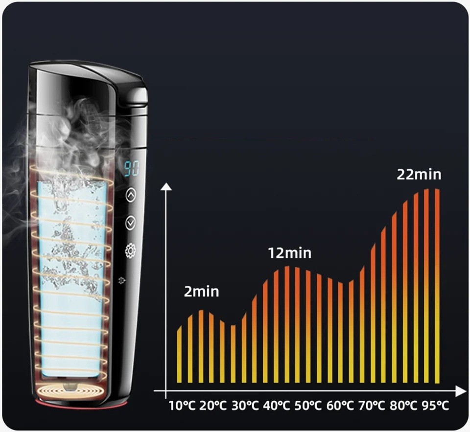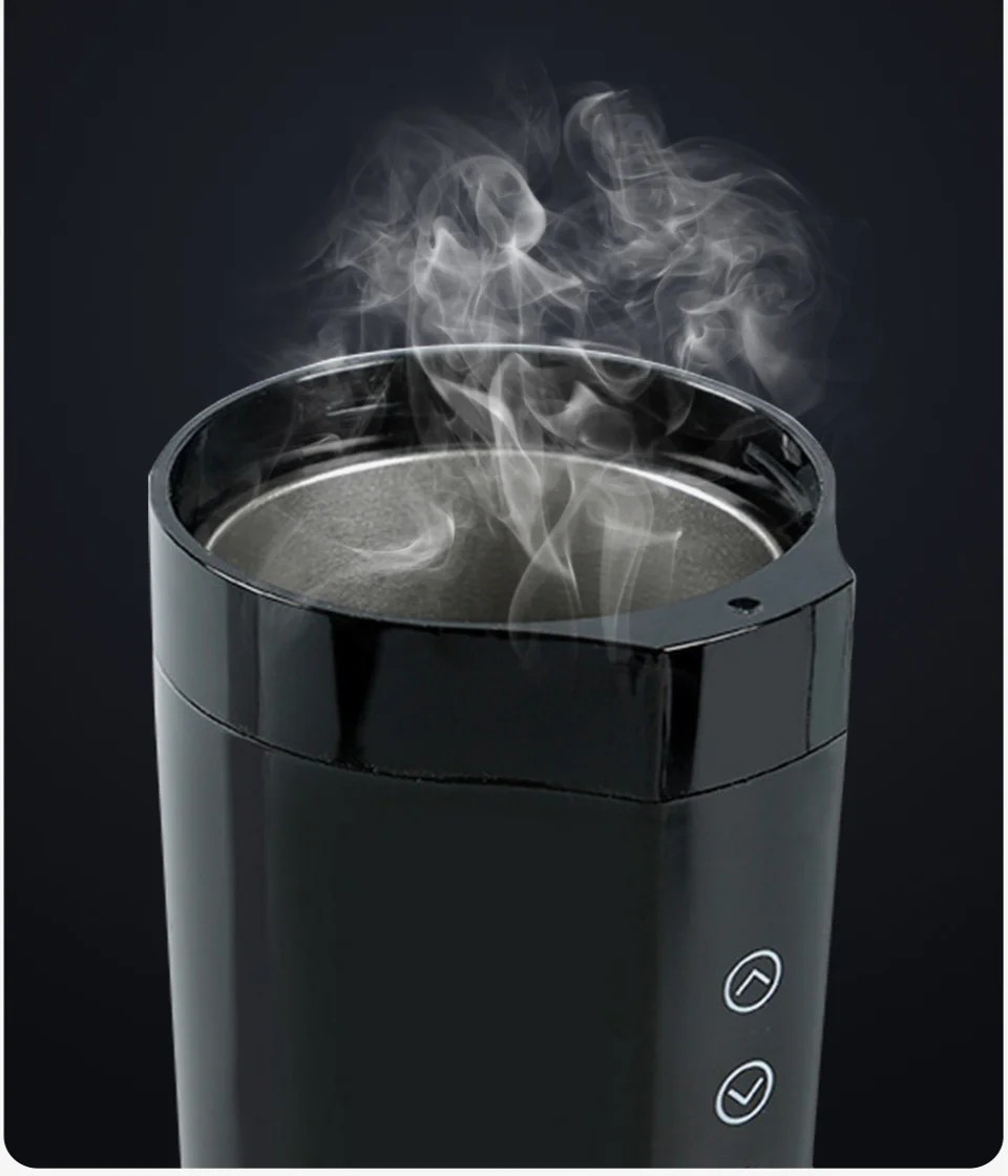 Tasse chauffante pour voiture 12V 24V 400 ml 30–100 °C 15 A Acier inoxydable 304 Écran numérique Contrôle tactile Température constante La tasse chauffante portable pour voiture est la solution idéale pour tous ceux qui passent de longues heures sur la route et souhaitent toujours avoir de l'eau chaude à disposition. Grâce à l'alimentation
