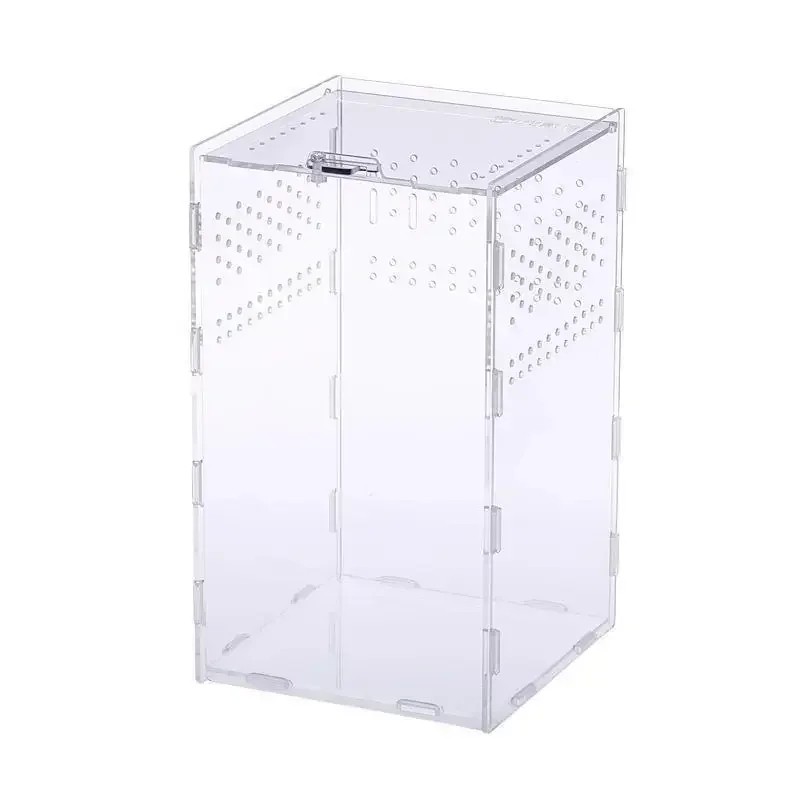 Terrarium en acrylique pour reptiles 12 x 12 x 20 cm Boîte d'élevage pour tarentules, araignées, scorpions et reptiles avec des ouvertures de ventilation