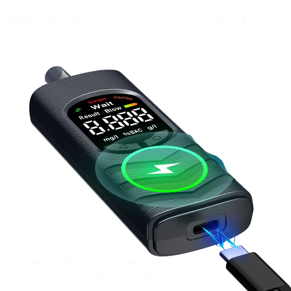 Le testeur d'alcool numérique portable est un appareil pratique conçu pour un contrôle rapide de l'alcool dans l'haleine dans des situations quotidiennes. Grâce à son design compact, il sert de petit analyseur respiratoire qui peut être facilement transporté dans une poche, un sac ou un compartiment de voiture. Un grand avantage est le résultat rapide, qui permet une orientation immédiate sans attente inutile. Le testeur est conçu pour une utilisation simple et un contrôle clair avant de prendre le volant. Le chargement se fait de manière moderne via USB-C, ce qui correspond aux normes actuelles.