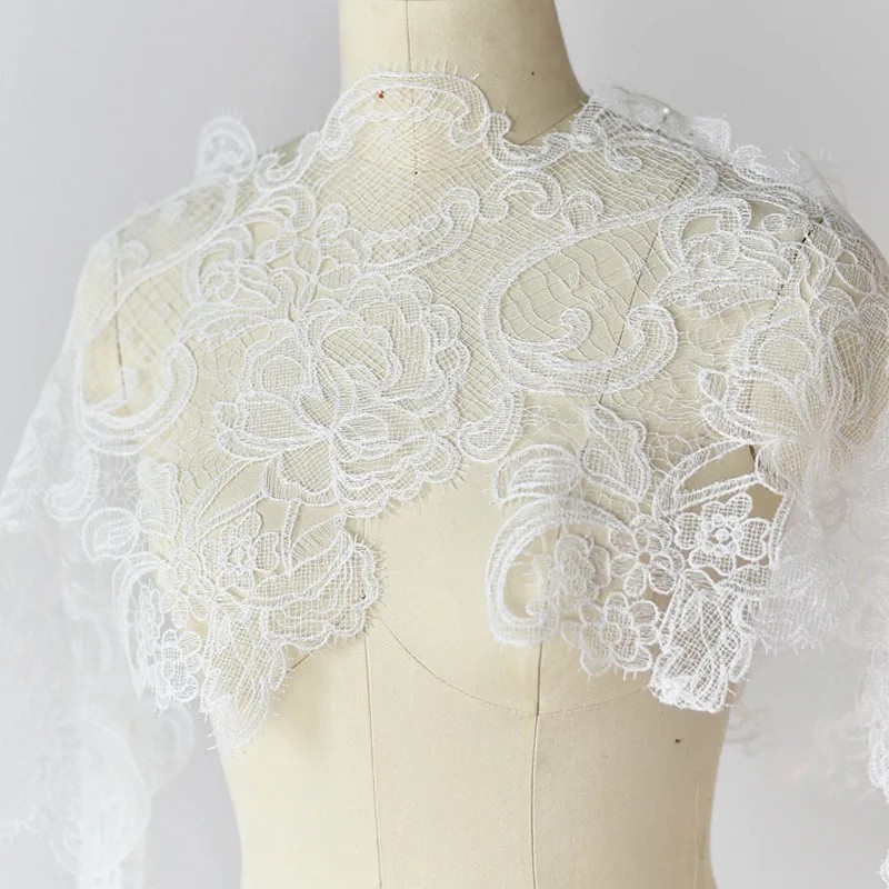 Tissu en dentelle française 28 cm x 91 cm Mélange de polyester et de coton dentelle décorative pour couture décoration de vêtements décorations de mariage