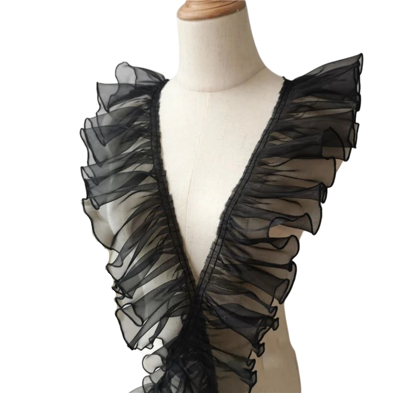 - Tissu plissé à volants décoratif avec broderie