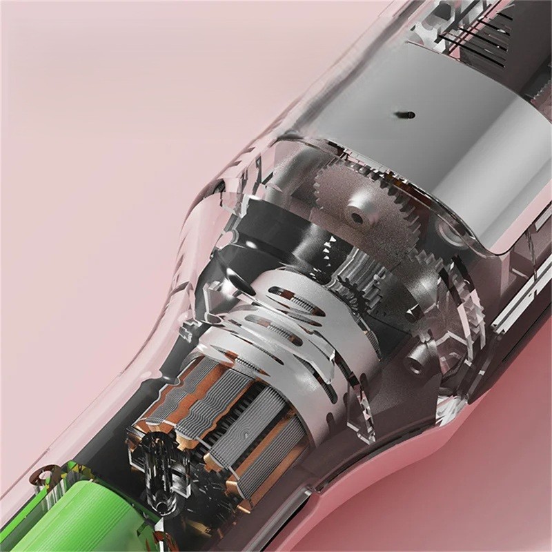 Le dispositif fonctionne comme un éliminateur de pointes fourchues et est adapté aux cheveux qui sont secs, fragiles ou abîmés. Grâce à son fonctionnement sur batterie, il n'est pas nécessaire d'être limité par un câble lors de son utilisation. La recharge se fait via une batterie intégrée.