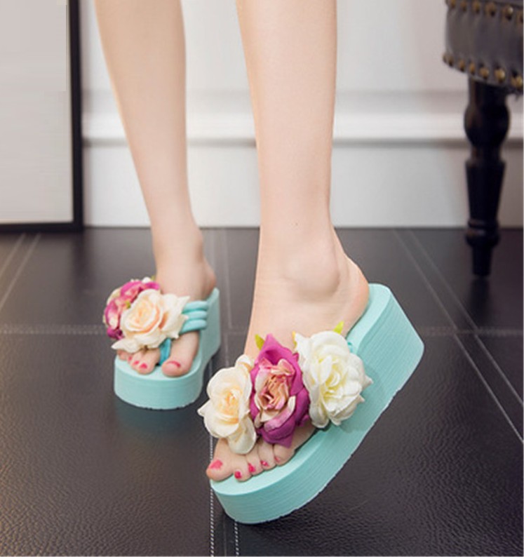 Tongs à plateforme pour femmes avec fleurs