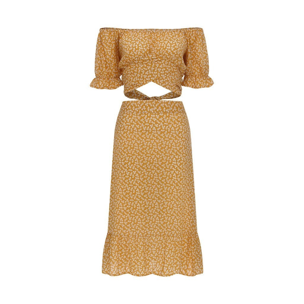 Top court à fleurs et jupe pour femmes B1099