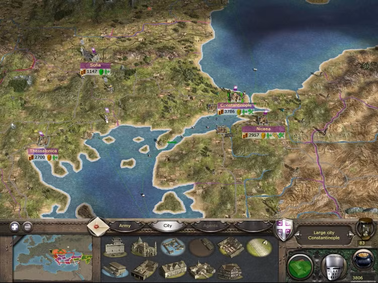 Vous gérerez votre empire d'une main de fer et vous occuperez de tout, de la construction et de l'amélioration des villes au recrutement et à l'entraînement des armées. Utilisez la diplomatie pour manipuler alliés et ennemis, déjouez l'inquisition redoutée et influencez le pape. Menez des combats lors des croisades et apportez la victoire à l'islam ou au christianisme dans la guerre sainte.