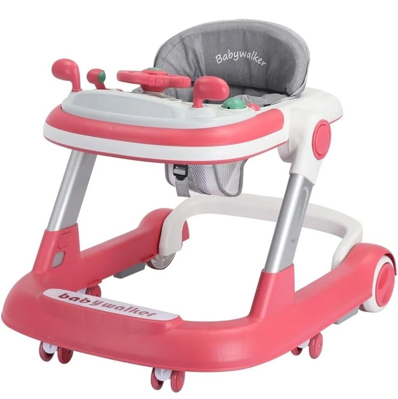 La trottinette 2 en 1 est conçue pour soutenir les premiers pas des tout-petits et permet un mouvement sûr et le développement des compétences motrices. Grâce au plateau amovible, la trottinette peut également être utilisée pour l'alimentation, tandis que le plateau musical offre aux enfants une expérience interactive sans nécessiter de piles. La construction combine la résistance du plastique avec un siège confortable en coton et lin, assurant stabilité et confort lors d'une utilisation prolongée. Le mécanisme pliable permet un rangement et un transport faciles de la trottinette, ce que les parents et les gardiens apprécieront.