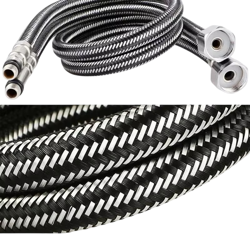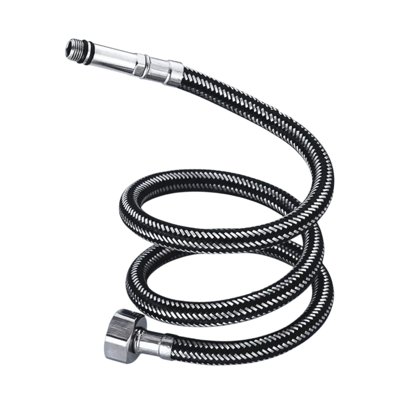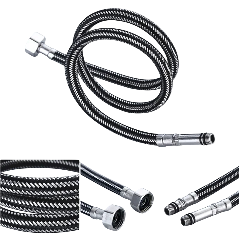 Le tuyau est adapté à différents types de robinets de cuisine et de salle de bain, offrant un raccordement sûr et fiable, résistant à la pression et aux variations de température, et grâce à son tressage, il supporte également les flexions répétées sans se détériorer.