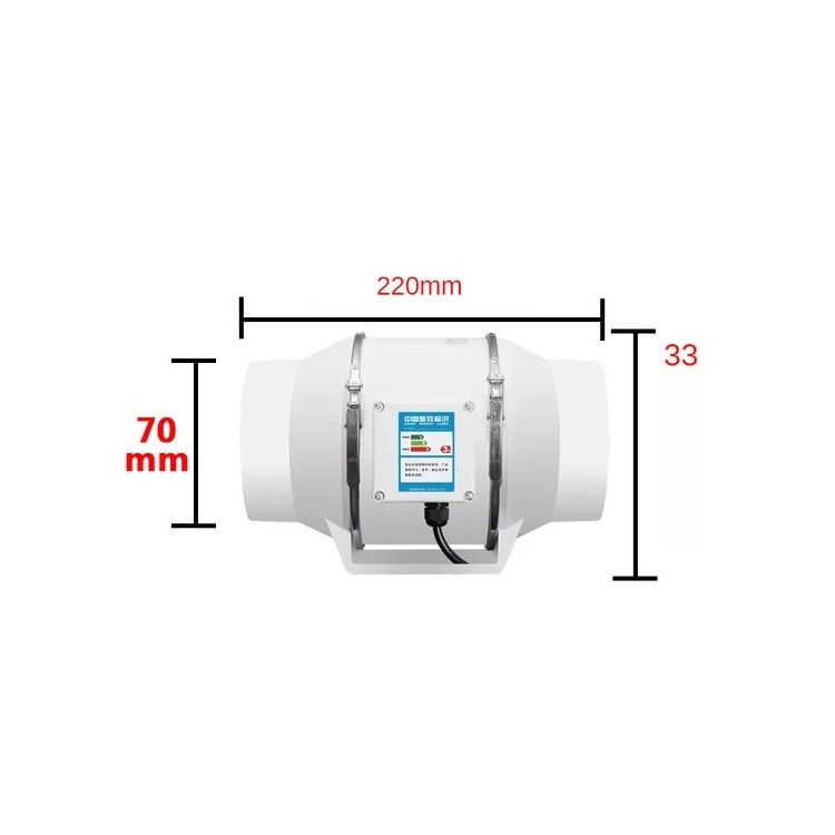 • Dimensions 220 × 70 mm, diamètre de buse 70 mm – installation facile dans les conduits ou sur le mur