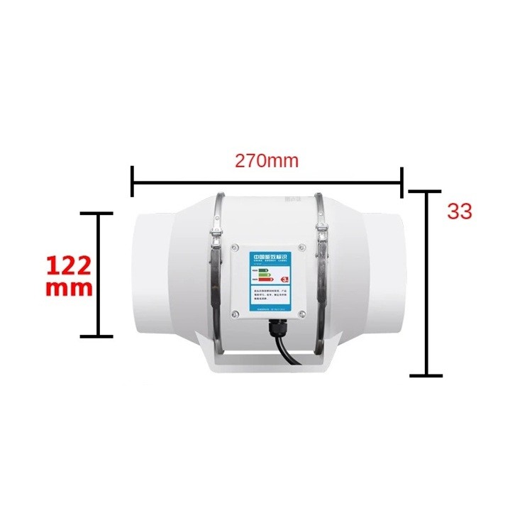 Ventilateur d'extraction 270x122 mm 40 W Ventilateur de conduit silencieux 2600 tr/min 310 m³/h Purificateur d'air mural pour salle de bain et cuisine