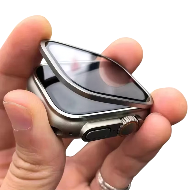 Verre trempé pour Apple Ultra 49 mm verre trempé avec cadre en métal protection d'écran coque résistante aux chocs contre les rayures