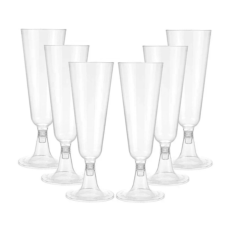 Les verres en plastique à champagne sont une solution pratique pour servir des boissons pétillantes lors de divers événements festifs. Grâce à leur forme rappelant les flûtes classiques à champagne, ils sont adaptés pour servir du champagne, du prosecco ou d'autres vins mousseux.