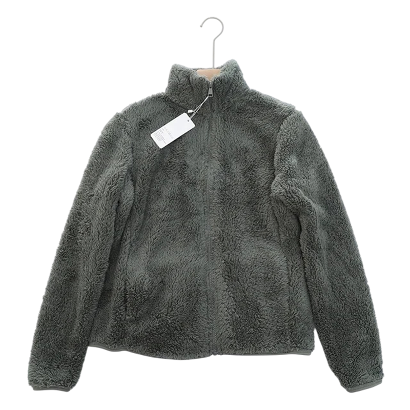 Veste en peluche d'hiver en polyester avec col haut, surface douce et chaude et fermeture éclair offre confort, chaleur et style pour la saison hivernale. Description complète