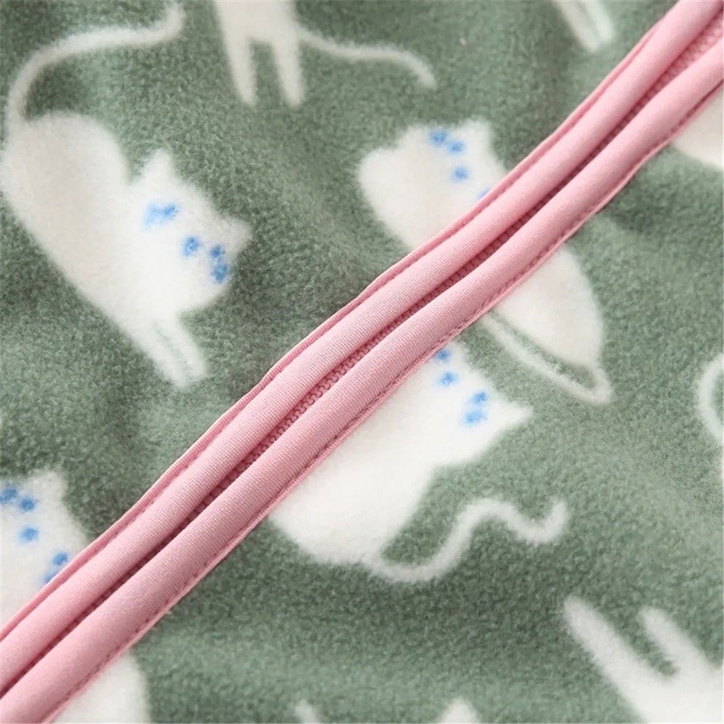 Veste d'hiver pour enfants avec col haut Veste unisexe chaude à fermeture éclair Veste en peluche verte avec poches Veste d'hiver confortable avec motif de chats pour enfants